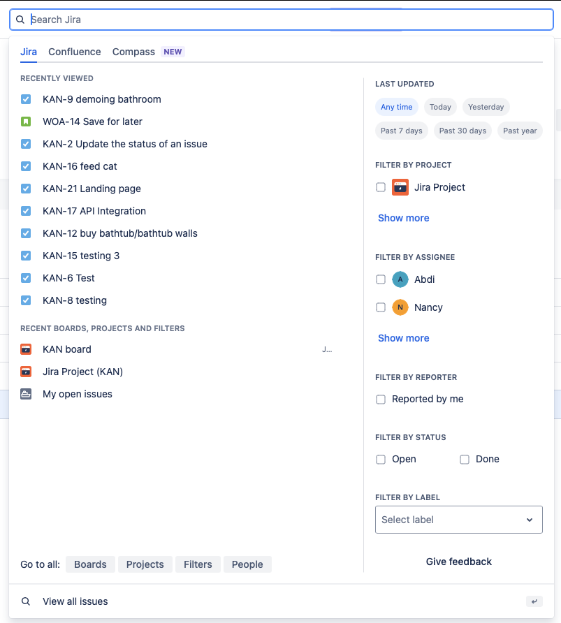 Now, when users click on the search bar, a menu option appears, allowing them to select 'comments' as the search type. Simply enter keywords, and Jira will retrieve all relevant comments, making it easier to find and reference important information