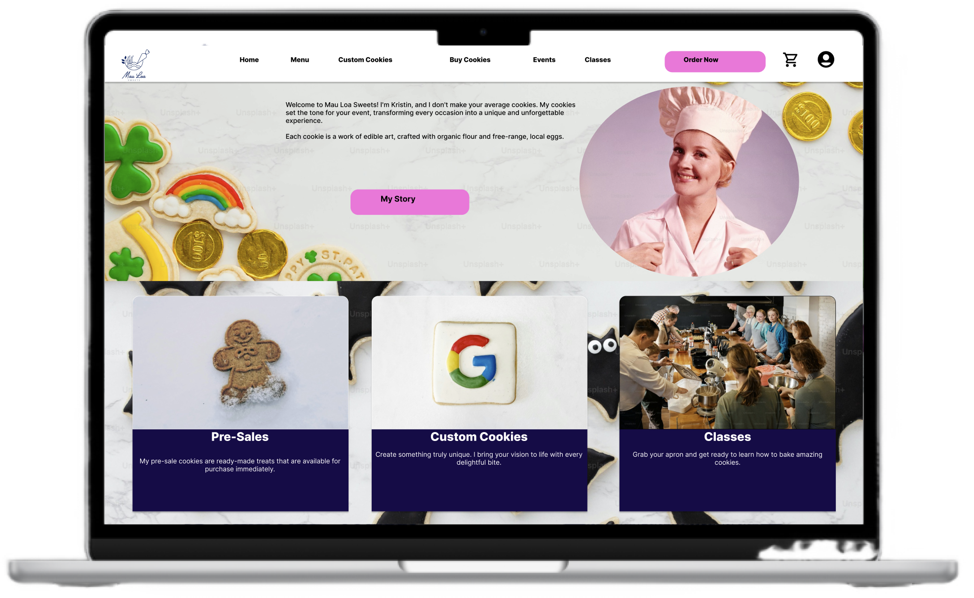 Mau Loa Sweets wanted to ensure that their website effectively communicated their offerings and made it easy for users to navigate and complete key tasks. The primary focus was on attracting and informing potential clients, encouraging custom orders, promoting pre-sales, and facilitating class sign-ups.