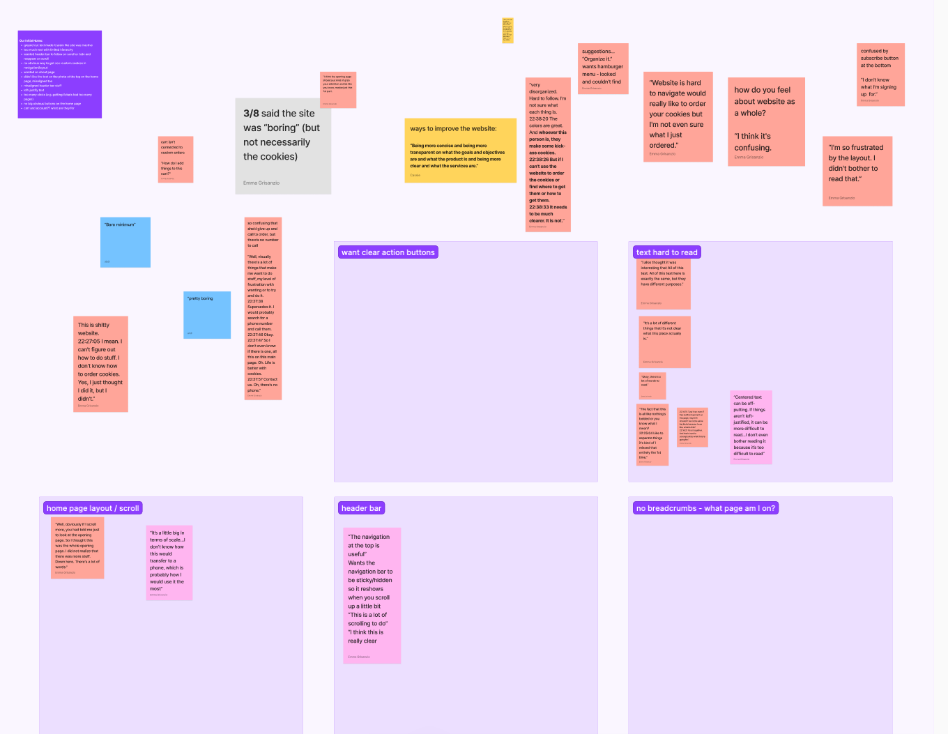 Eight participants were recruited to perform key tasks on the website, such as understanding offerings, purchasing non-custom cookies, submitting custom cookie inquiry forms, and signing up for events. The testing revealed several pain points and areas for improvement.