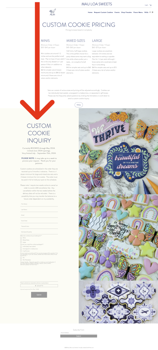 “If I had not scrolled down, I wouldn’t have found the form to order the custom cookies.”