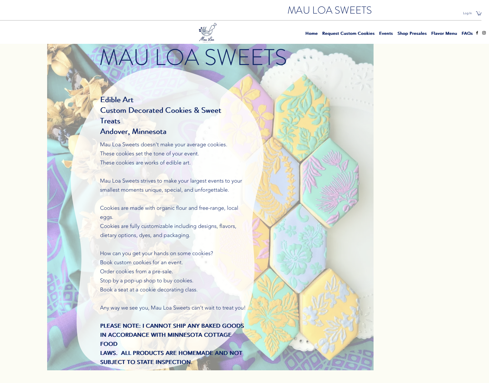 Mau Loa Sweets, founded by Kristin in 2019, is a bakery based in Andover, Minnesota. The bakery specializes in custom-decorated cookies and sweet treats, emphasizing the use of organic and local ingredients. The name "Mau Loa" reflects Kristin's Hawaiian heritage and symbolizes endless creativity. Mau Loa Sweets offers custom orders, holiday pre-sales, pop-up events, and cookie decorating classes.